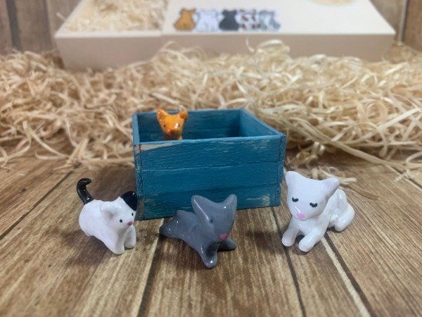 Material de los gatitos: Arcilla Polimérica, pintado a mano y esmaltado