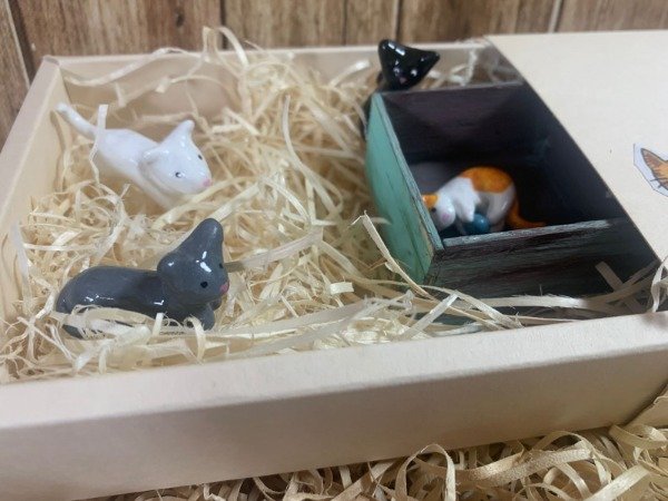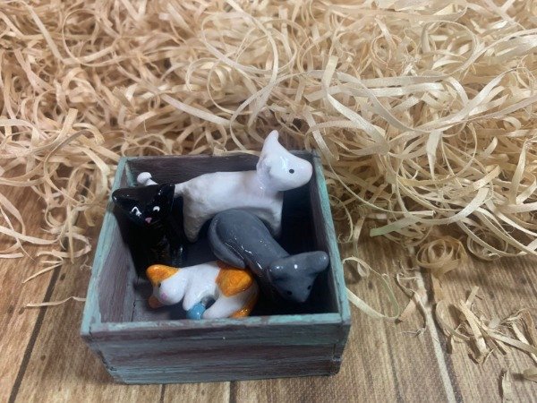 Material de los gatitos: Arcilla Polimérica, pintado a mano y esmaltado